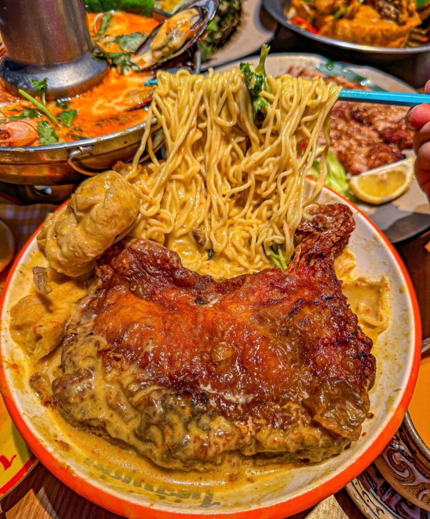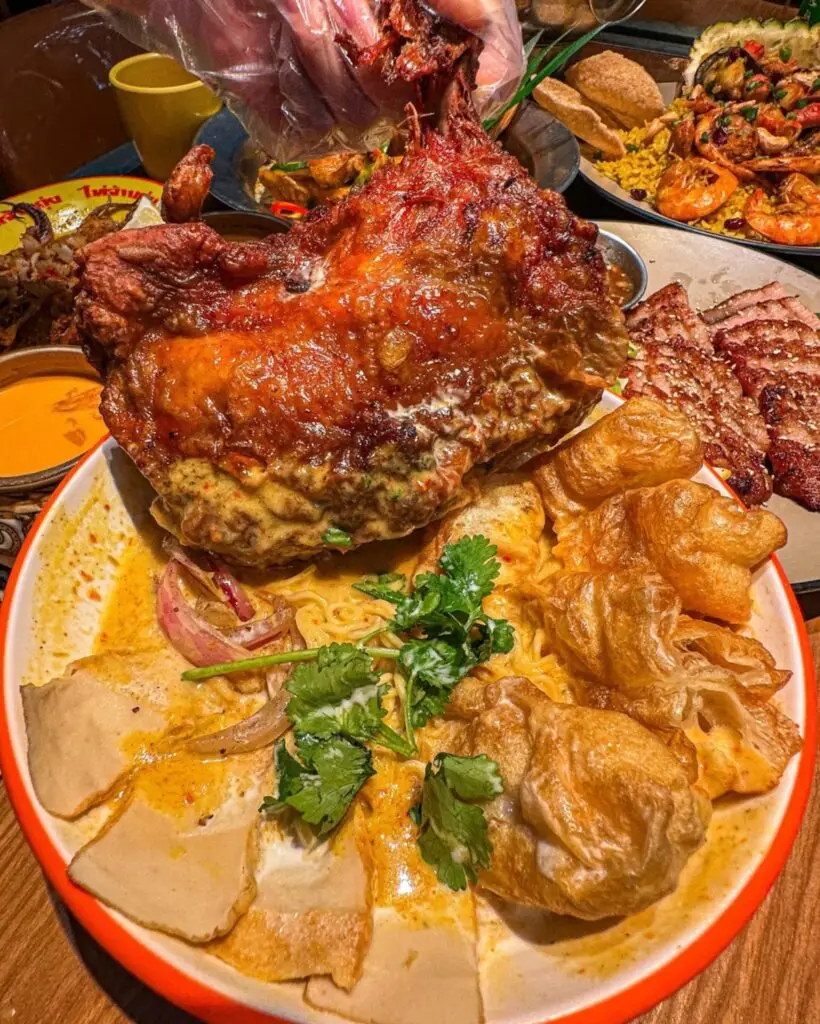 Signature Fried Chicken with White Curry: The chicken leg is massive! It’s incredibly crispy on the outside and juicy on the inside, soaked in creamy curry flavors.